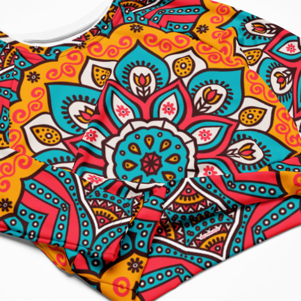 Introducing the Bglam long-sleeve crop top featuring a mesmerizing Mandala texture pattern design. This trendy crop top combines artistic expression with cultural symbolism, making it a captivating choice for young women. The intricate and symmetrical motifs of the Mandala come to life on the fabric, creating a visually stunning and spiritually meaningful textile. Whether it’s a vibrant tapestry, a flowing scarf, or a printed garment, the Mandala design adds an elegant and intriguing touch to any outfit. Embrace the harmonious energy and beauty associated with this ancient art form, and bring a sense of serenity and style to your look with the Bglam Mandala texture pattern crop top.