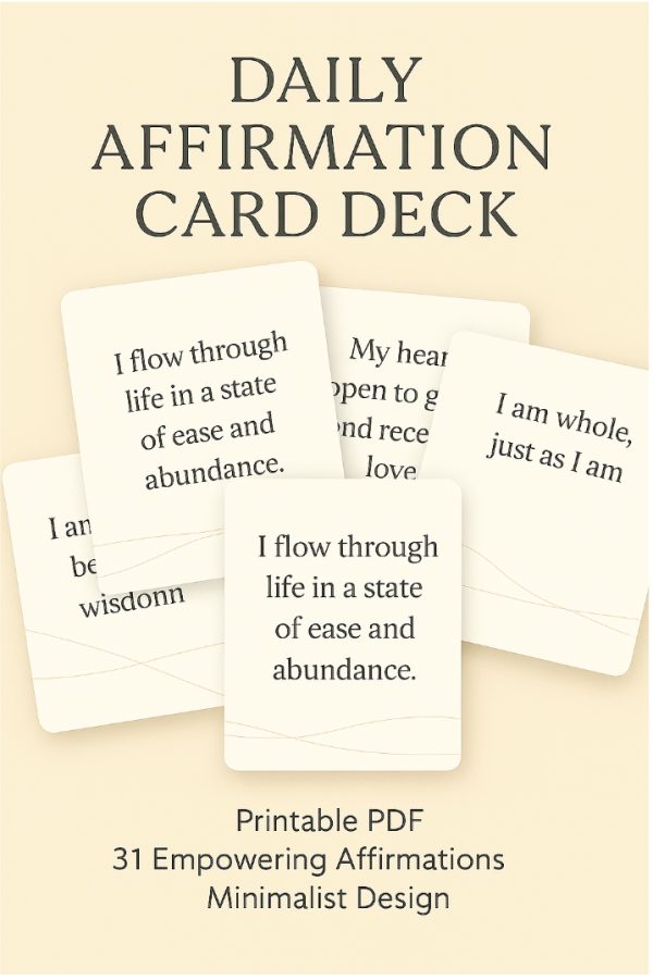 A high-quality PDF file containing 31 printable affirmation cards