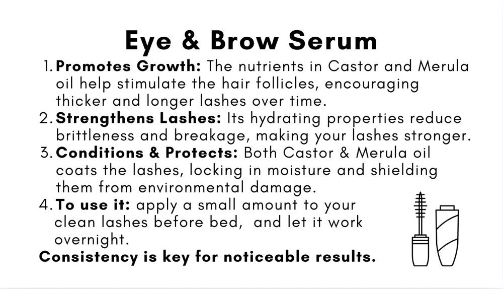 A unique blend of Castor Oil and Marula Oil carefully formulated to nourish, strengthen, and encourage the natural growth of eyelashes and brows.
