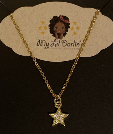 Dainty little gold star necklace and earring set. Makes a very nice gift, for that special L’il Darlin’