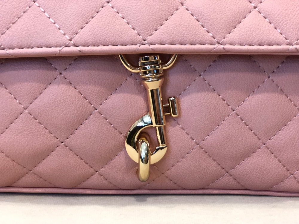 - Flap closure with a gold clip hardware