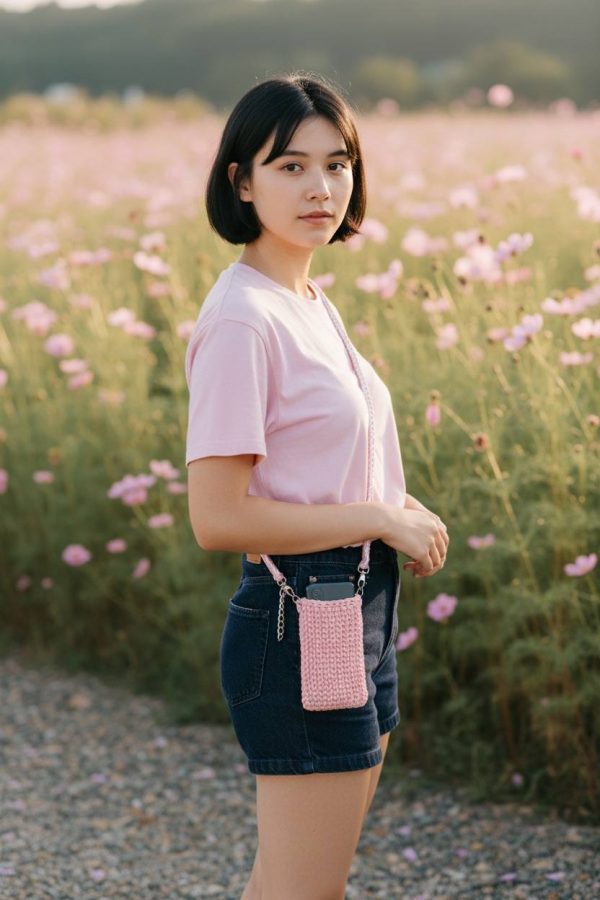 Handmade crochet phone bag with a simple, practical design. Lightweight and comfortable for everyday use, featuring a long strap for easy carrying. Perfect for holding your phone and small daily essentials