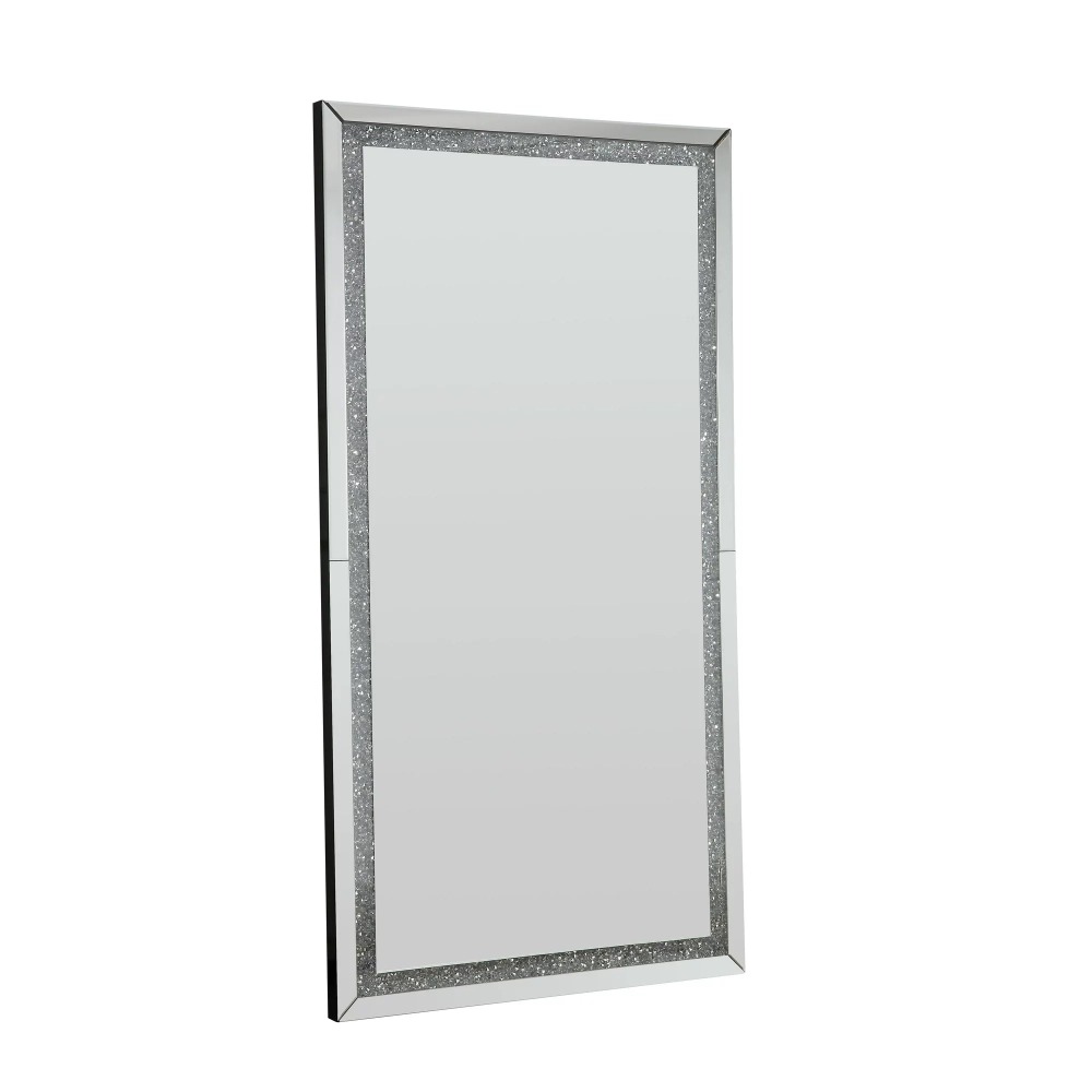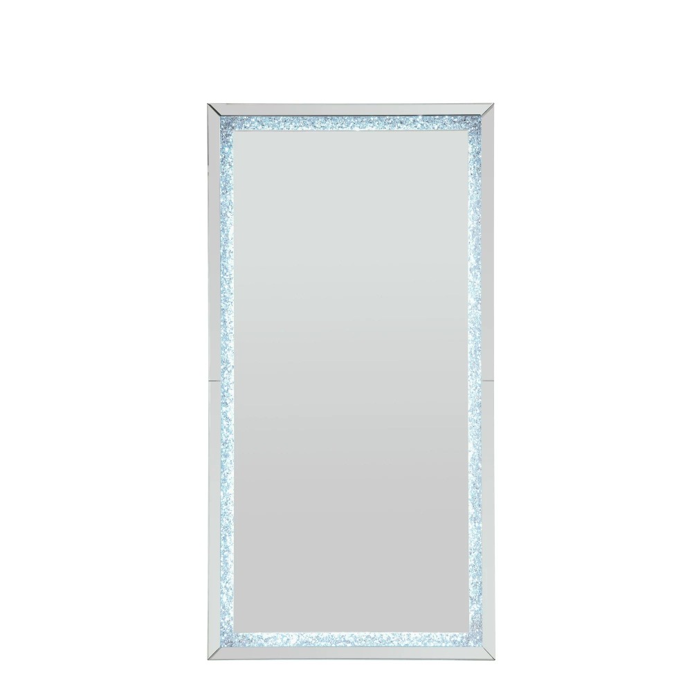 The faux diamond inlay is the finishing touch to the glamorous Noralie Mirror. This accent mirror features LED lighting with faux diamond inlay that glimmer and glitter in the available light. Its rectangular frame will work in your entrance, hallway, or living space. Both functional and stylish. this glitzy decor will brighten up any room in your house. Reflect light and your bold aesthetic design with the Noralie Accent Mirror.