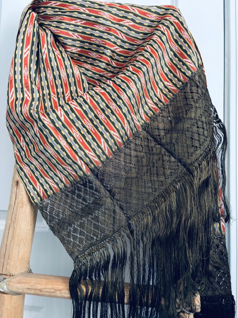 Many ways to use this rebozo. Handmade in Santa Maria del Rio, San Luis PotosÃ, Mexico.