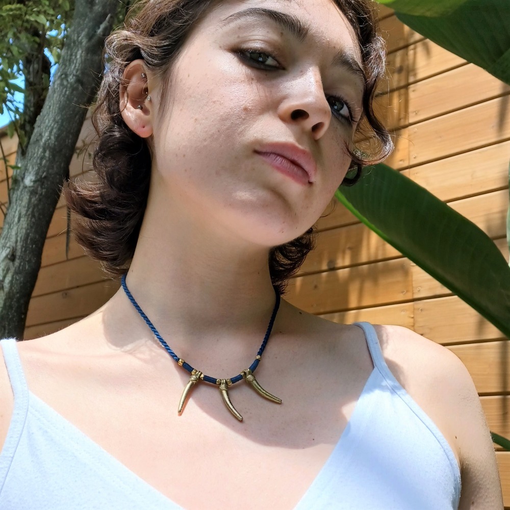 Lost wax cast chili pepper charms flanked by handmade brass beads on super soft cotton cord. Earthy, edgy and very tribal. Gender neutral. Available in sizzling burgundy, bold blue, forest green and sultry black. Approx 16 inches. Gold-filled lobster clasp.
