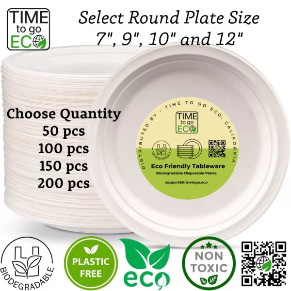 Time To Go Eco – Super Rigid Strong Bagasse Disposable Party Plates | 100% Biodegradable & Compostable 🌱♻️