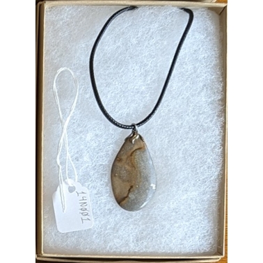 - Custom-made jump ring secures pendant to adjustable length necklace cord with lobster claw clasp: 18-20″